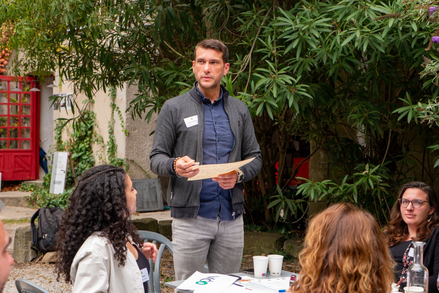 La journée s’ouvre sur l’intervention de Sylvain Giessner, Président de l’assocation depuis le mois de juin, et Illona Pior, la Directrice. L’occasion de présenter le déroulé de la journée, animée par deux facilitatrices de chez Percolab, et ainsi préciser que le travail issu de ce séminaire permettra d’élaborer des propositions concrètes qui seront soumises aux principaux candidats des prochaines élections municipales.