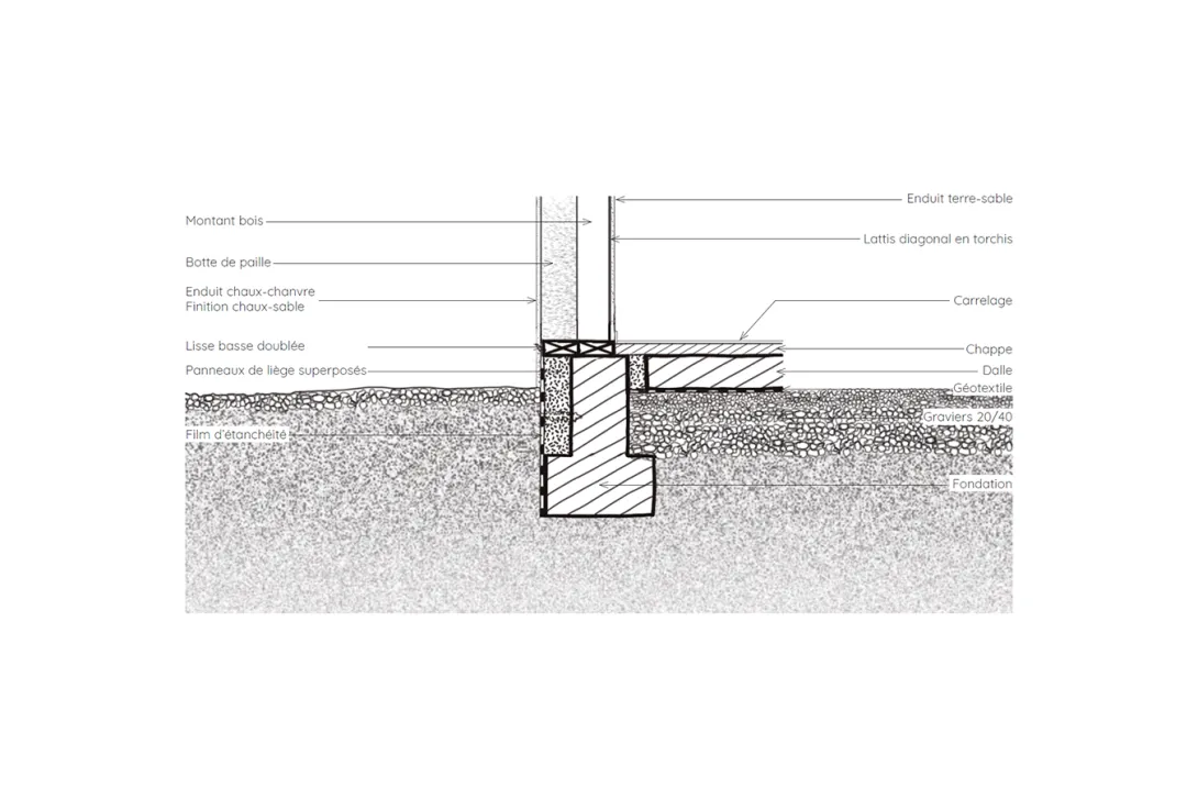 - Revêtement extérieur : enduit chaux-chanvre et finition chaux-sable