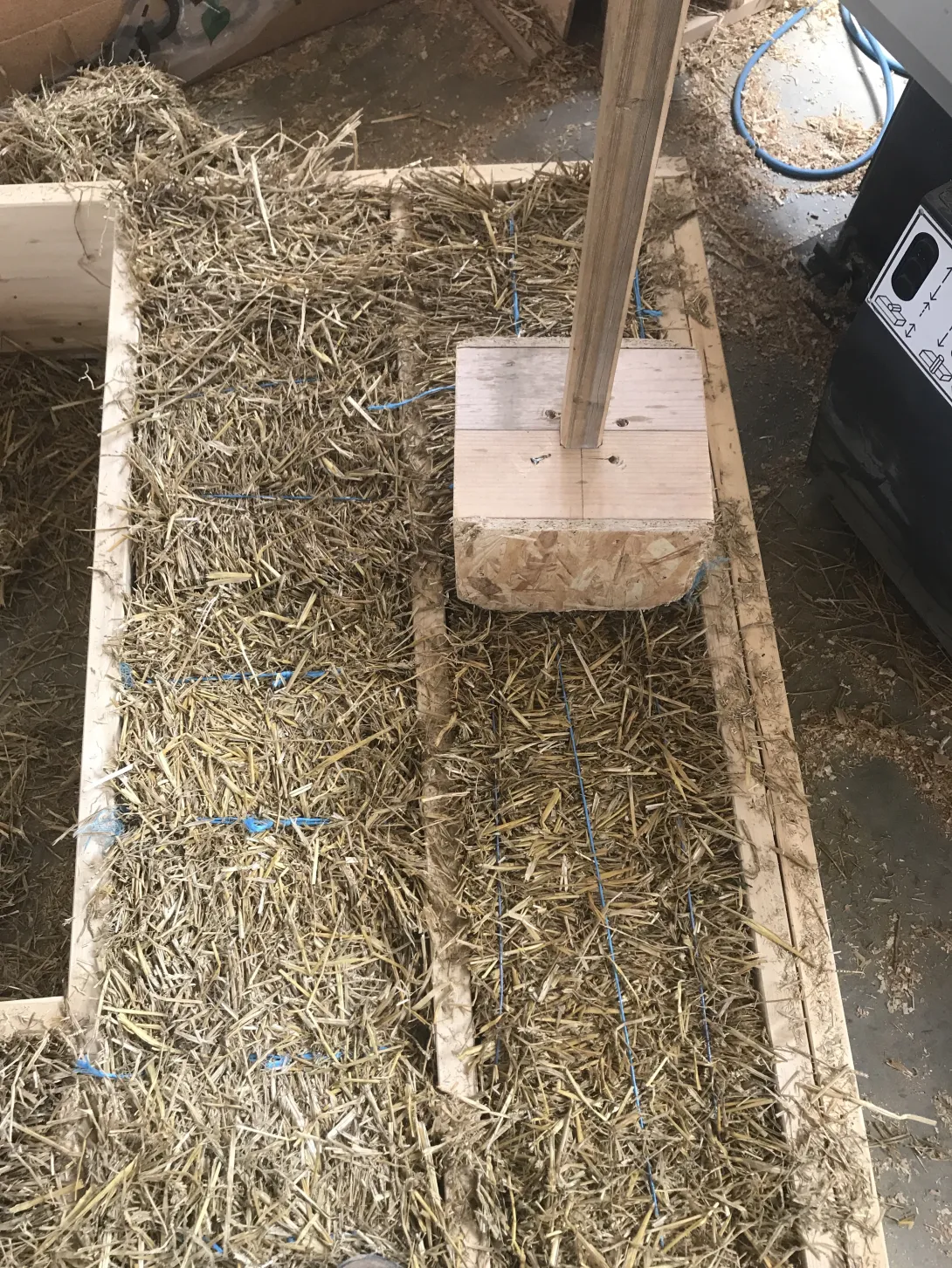 - Murs à ossature bois isolés par des bottes de paille de 36 cm (R = 6,7 m².K/W)