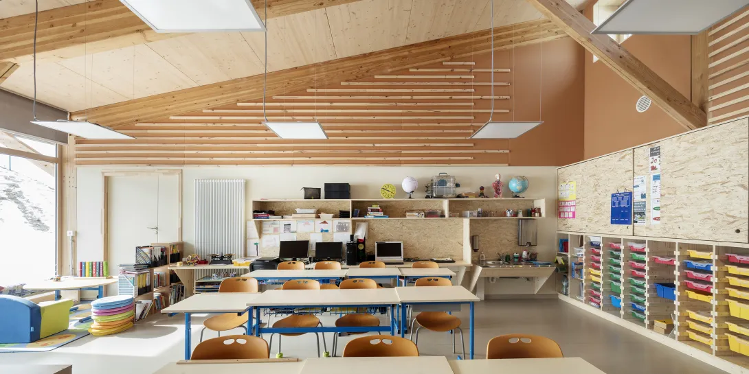 - Une crèche, un centre de loisirs, une école maternelle et élémentaire, une cantine, un gymnase et une chaufferie bois répartis sur 5 bâtiments
