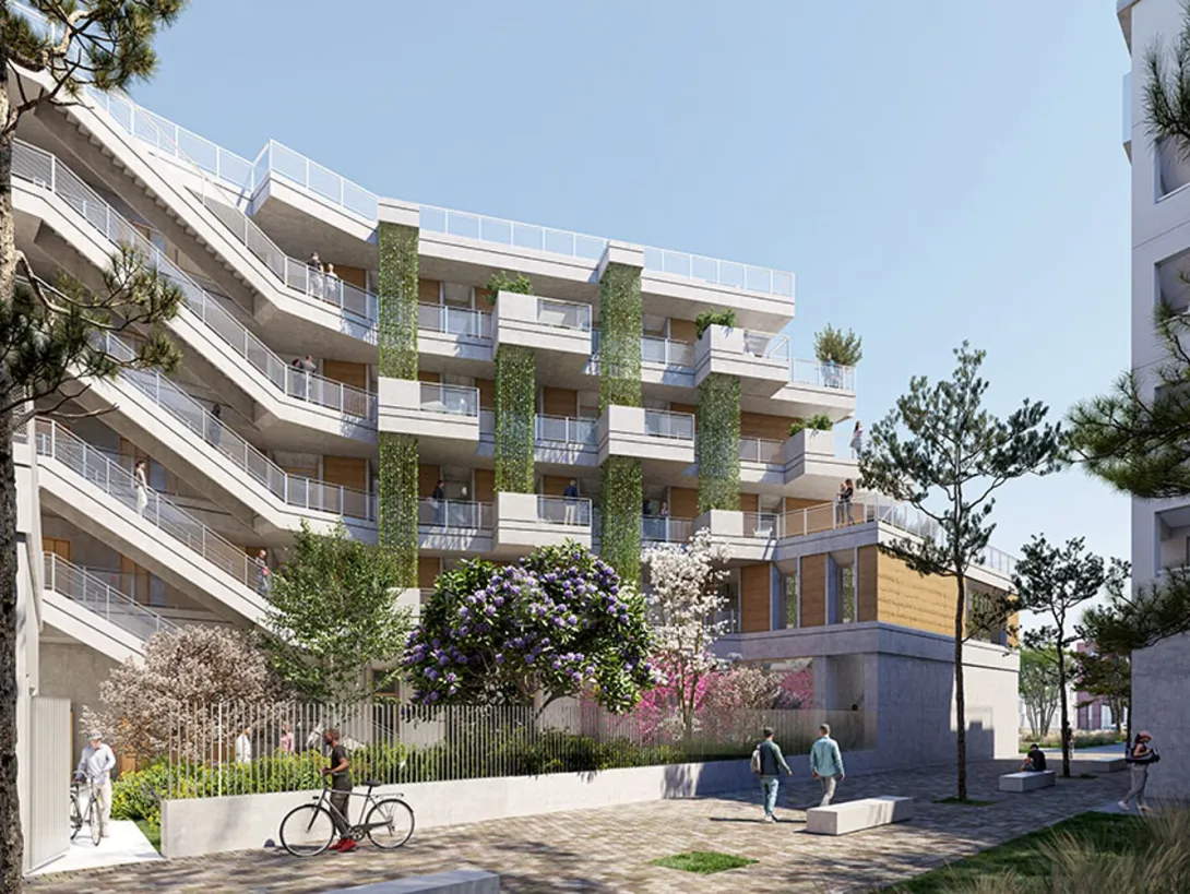 Il est prévu un cœur d’îlot paysagé, ainsi qu’une végétalisation partielle en toiture et en coursive.