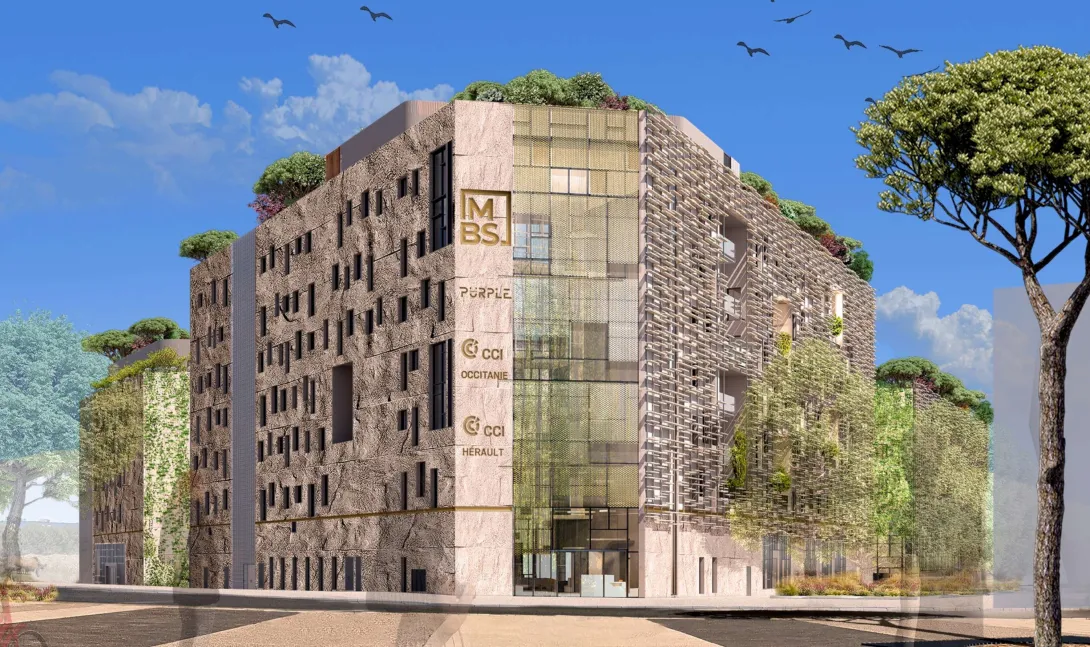 Le projet de construction du nouveau campus CCI MBS PURPLE sur la ZAC Cambacérès à Montpellier a été reconnu Bâtiment Durable Occitanie niveau ARGENT en juillet 2023 pour sa phase Conception.