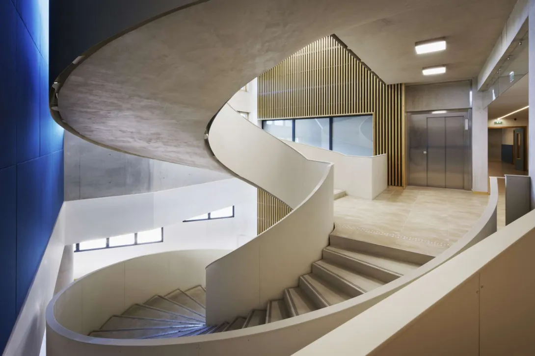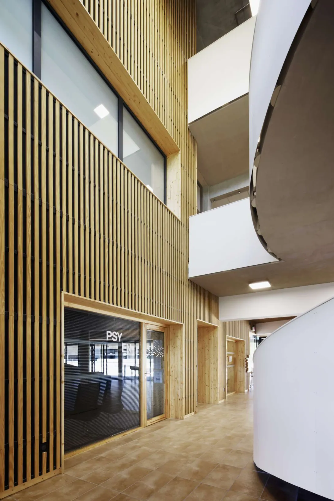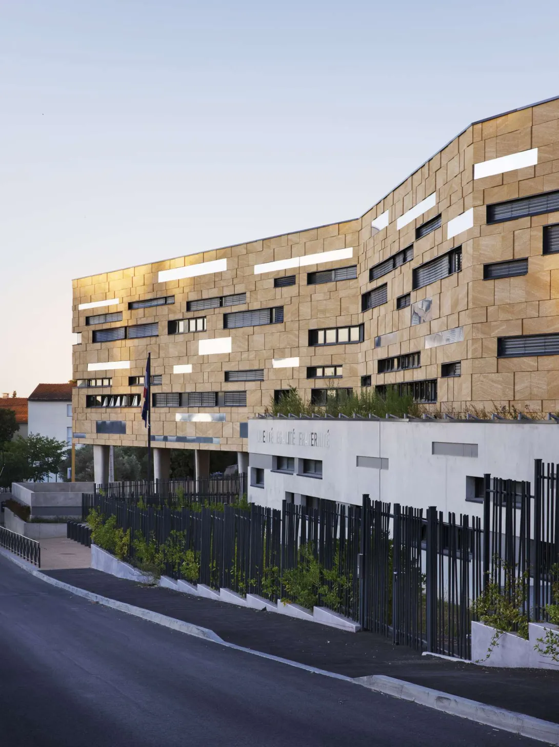 Elle a privilégié l’emploi de matériaux locaux pour ses façades (pierre du Pont du Gard, béton bas carbone) et d’isolants biosourcés (laine de bois, laine de chanvre).