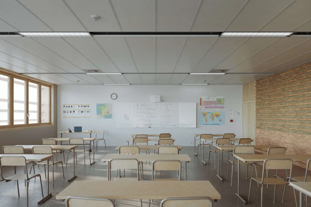 • Usages : collège (600 élèves extensible à 720), 1 logement de fonction, parking privé, public et bus, plateau sportif mutualisable, salle d’activités culturelles mutualisable