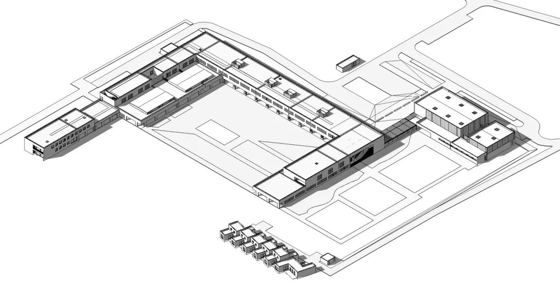 - Usages : collège de 28 classes (700-840 élèves) ; restauration (855 repas/jour) ; internat (60 lits) ; gymnase (type B) ; salle polyvalente (160 places) ; terrains sportifs extérieurs