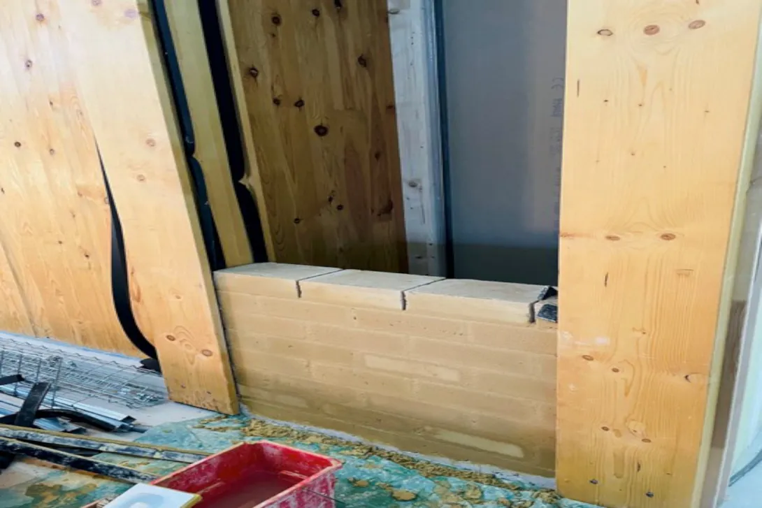 - Ponctuel (RDC) : murs béton isolés par l’extérieur par 14 cm de laine de bois sous enduit