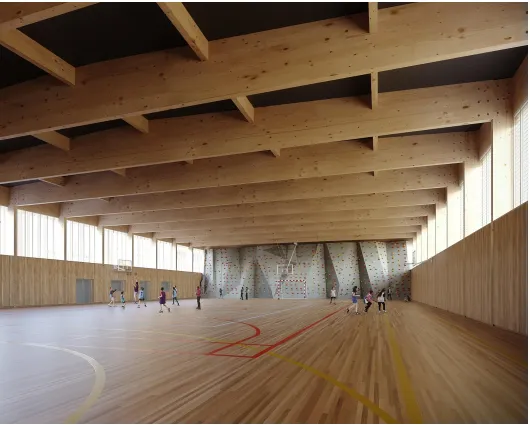 L’équipement vise une performance environnementale élevée à base de matériaux majoritairement biosourcés et locaux en filières courtes, associée à l’atteinte d’un niveau BEPOS (Bâtiment à Énergie Positive).