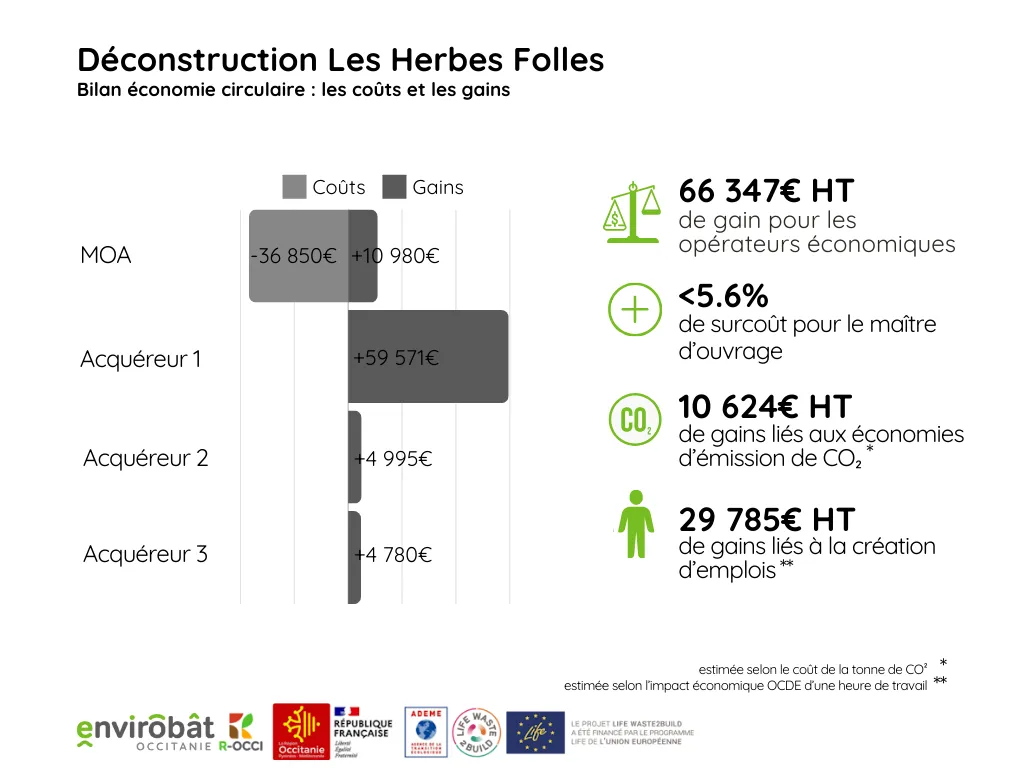 L’économie circulaire de ce projet apporte un gain économique pour le territoire équivalent à 109 756 €HT. 1 € investi par la maîtrise d’ouvrage est égale à 3 € pour le territoire.