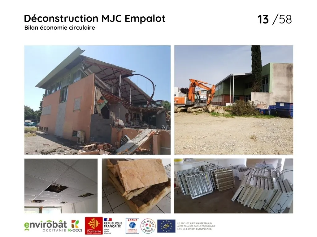 Ce projet intègre une démarche d’économie circulaire à travers le réemploi de ressources issues de la déconstruction. Il fait partie des chantiers expérimentaux de l’appel à projets Life Waste2Build.