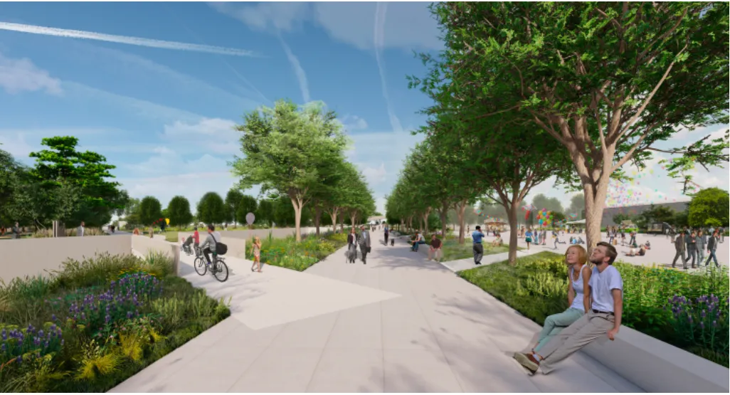 La désimperméabilisation du parc des expositions fait partie du vaste programme du Grand Parc Garonne. Lancé en 2014 par Toulouse Métropole, ce programme structurant pour la métropole toulousaine vise une réappropriation du fleuve par les habitants notamment via la création d’un poumons vert sur l’île du Ramier.
