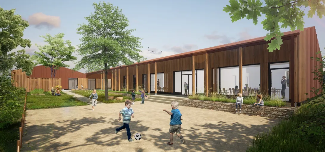 La nouvelle école sera construite avec des matériaux de structure et d’isolation biosourcés et mettra en œuvre de la géothermie profonde pour le chauffage et le rafraîchissement.