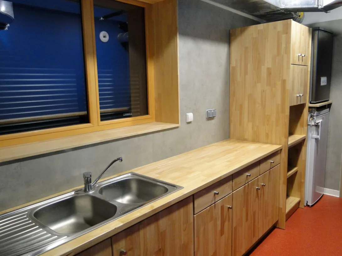 - Sur vide sanitaire (anciennes cuves) ; isolation sous chape polyuréthane 68 mm sur dalle béton 13 cm existante (R = 3,7 m².K/W)