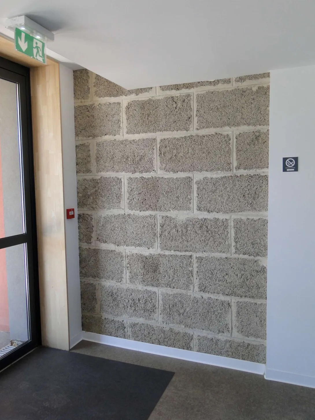 - Murs neufs au RDC (faible surface) en blocs de béton de chanvre