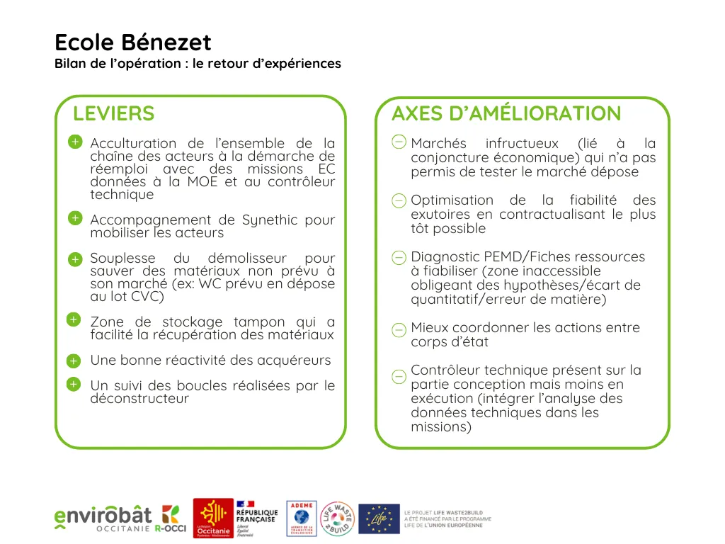 + : Acculturation de l’ensemble de la chaîne des acteurs à la démarche de réemploi avec des missions EC données à la MOE et au contrôleur technique