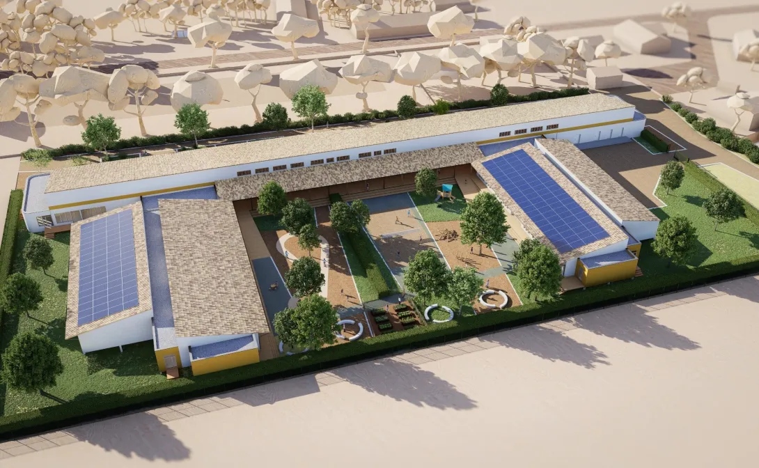 La construction du groupe scolaire est un projet mené en marché de conception-réalisation et fait appel à de la préfabrication 3D et 2D en bois pour la majorité des locaux. Pour le bien-être des enfants et leur sensibilisation à l’environnement, il est prévu d’aménager la cours en « oasis ».