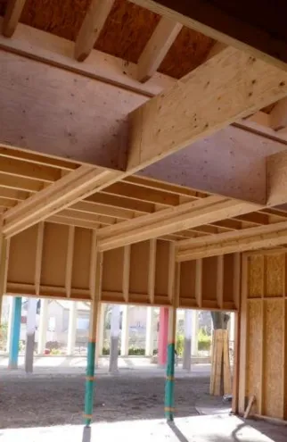 • Neuf : ossature bois avec isolation laine de roche (18 cm) et fibre de bois (5 cm)