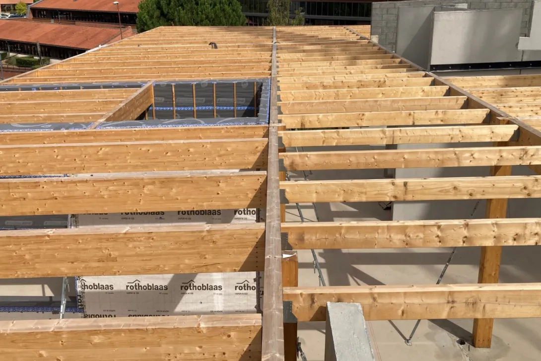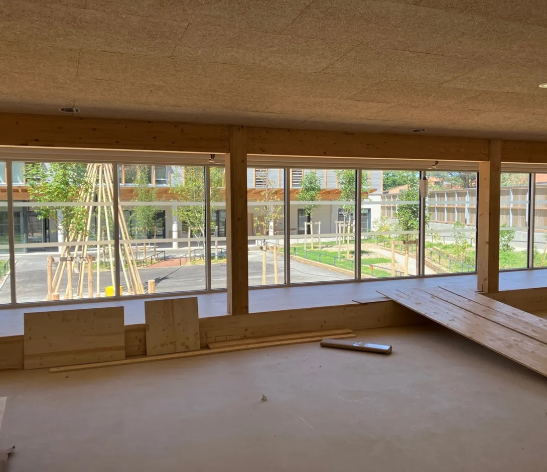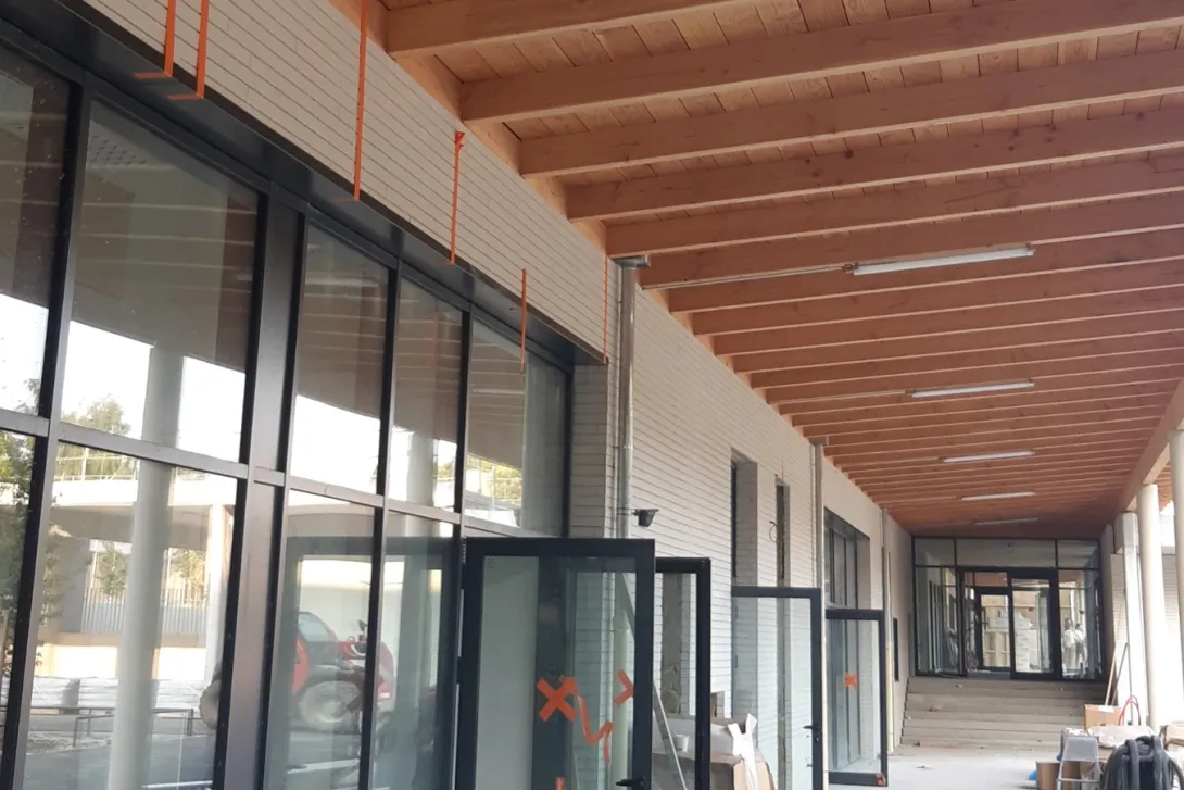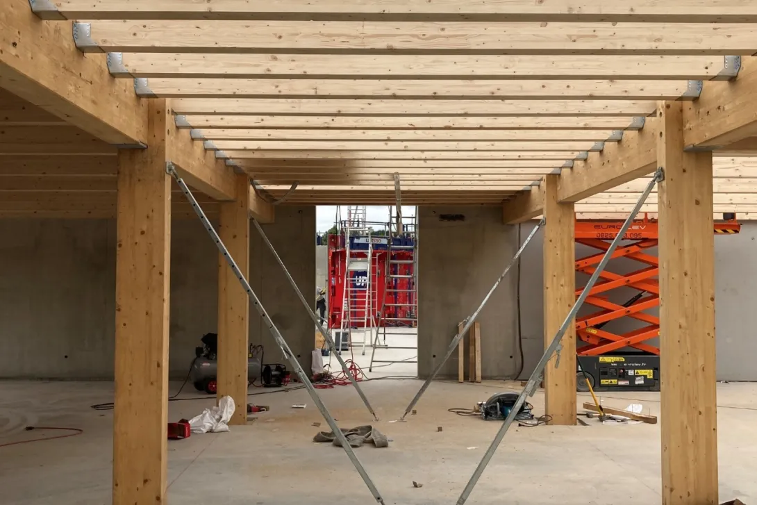 • Structure : mixte béton et bois (poteaux poutres en lamellé-collé)