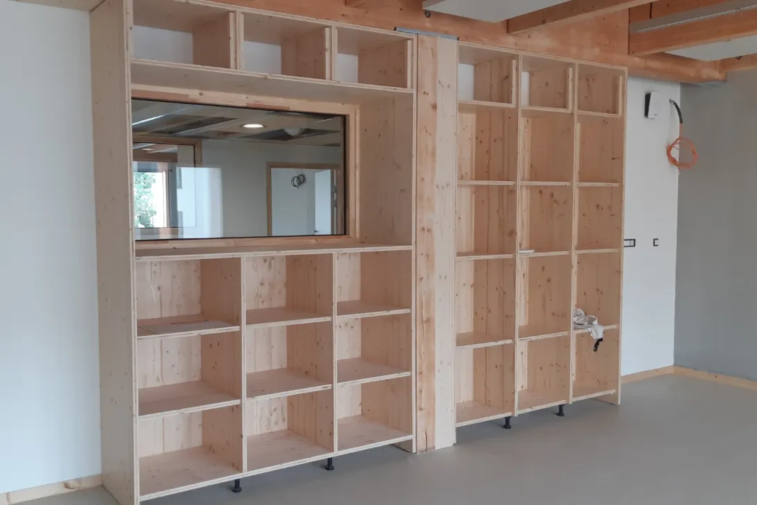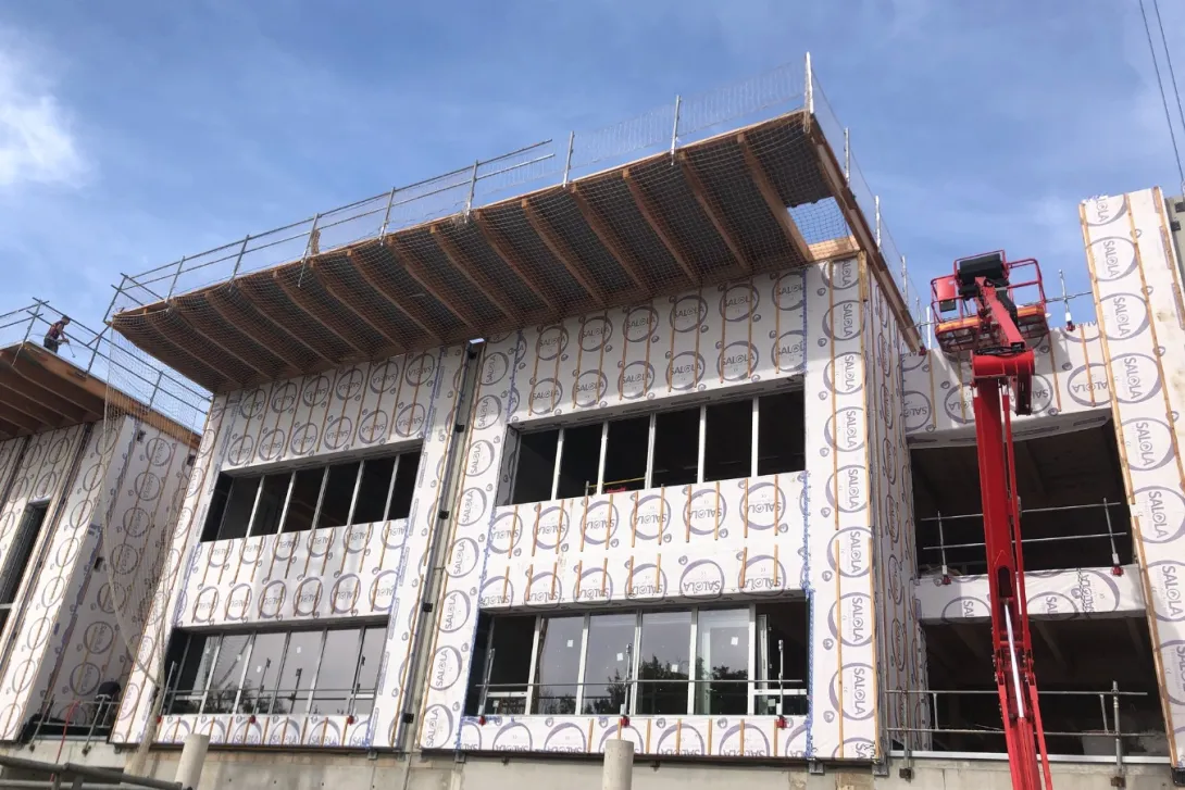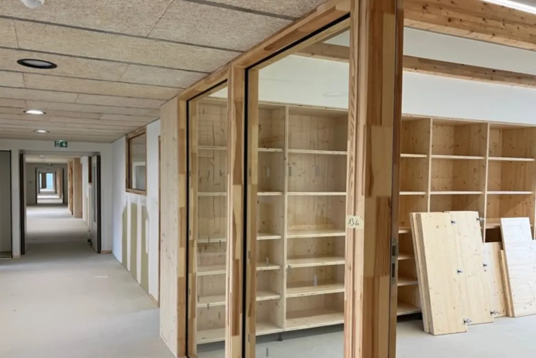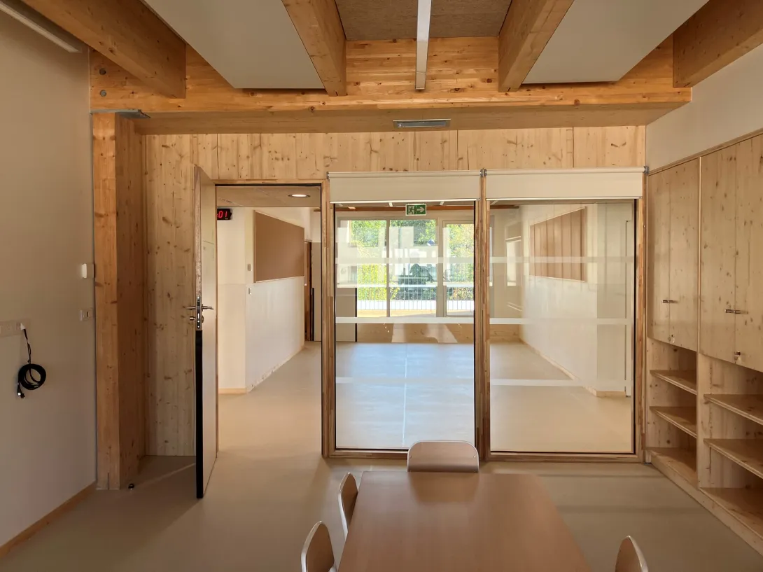 • Structure : mixte béton et bois (poteaux poutres en lamellé-collé)
