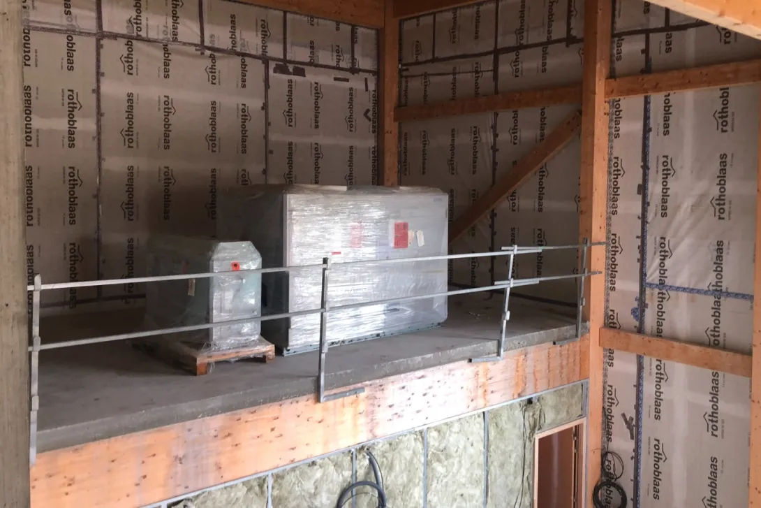 • R+1 et R+2 : murs ossature bois isolés par 36 cm de paille, avec isolation complémentaire en intérieur par 4,5 cm de laine de verre (R = 7,9 m².K/W)
