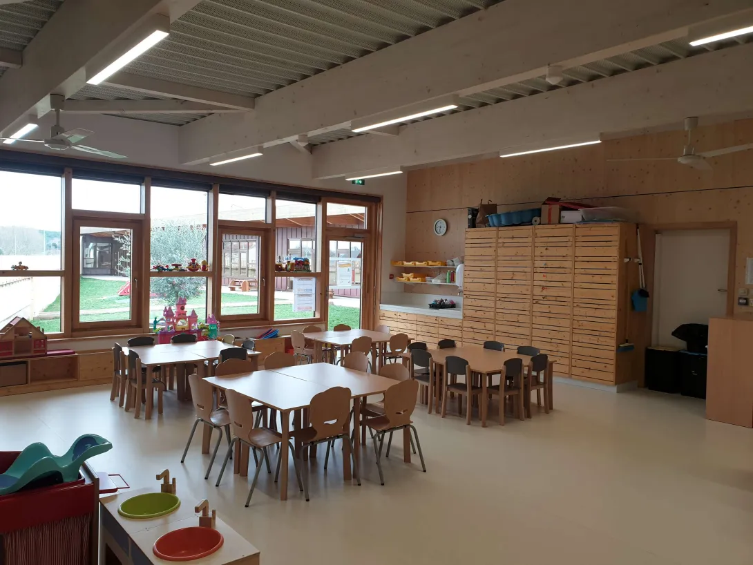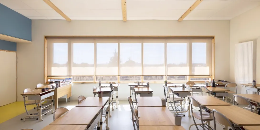 - LED avec détection de mouvement, gradation en fonction de la lumière naturelle (classes) ou détection de présence (sanitaires et locaux de passage) ou manuelle (ailleurs)