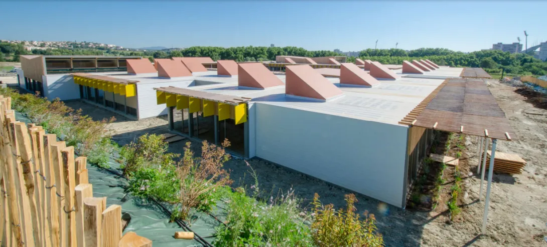 En raison de l’explosion démographique, le projet a été réalisé en conception-réalisation, à base de 157 modules tridimensionnels en bois, conçus, par une entreprise située à 20 km du site, pour être démontés et déplacés ailleurs sans affecter le fonctionnement du groupe scolaire lorsque les besoins auront changé.