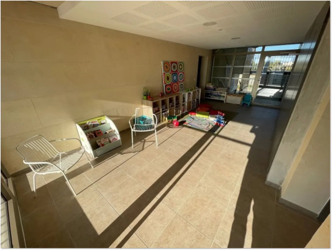 De nombreux espaces communs : salle polyvalente, chambres d’amis, salle de silence, atelier, jardin partagé, buanderie, profitent à l’ensemble du collectif multigénérationnel.