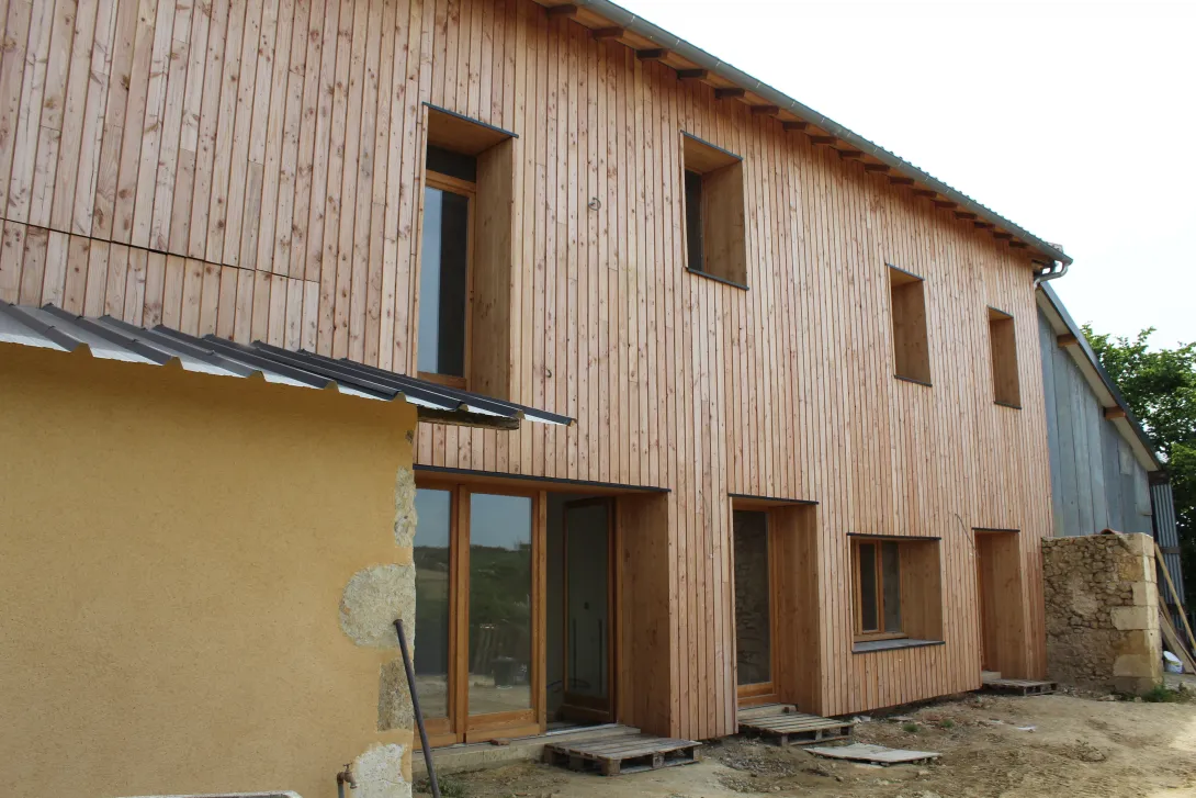 - Murs neufs en ossature bois et bardage bois isolés en fibre de bois (R= 5,1 m².K/W)