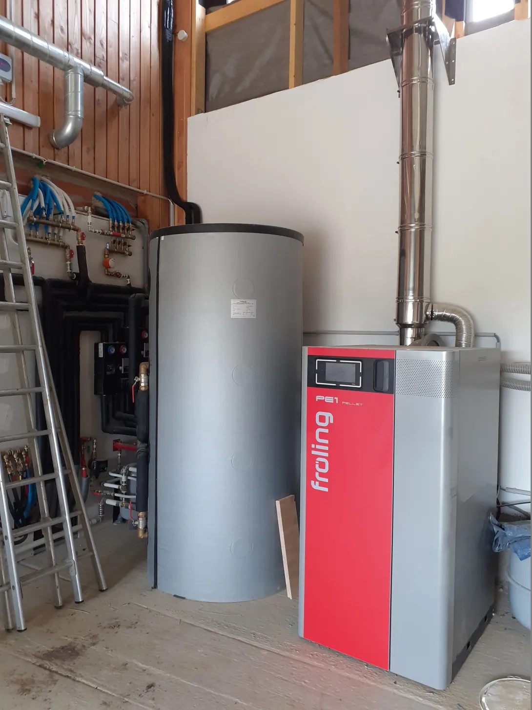 - Eau Chaude Sanitaire : chauffe-eau solaire collectif, capteurs 8 m2, ballon tampon 1000 L, appoint chaudière à granulés