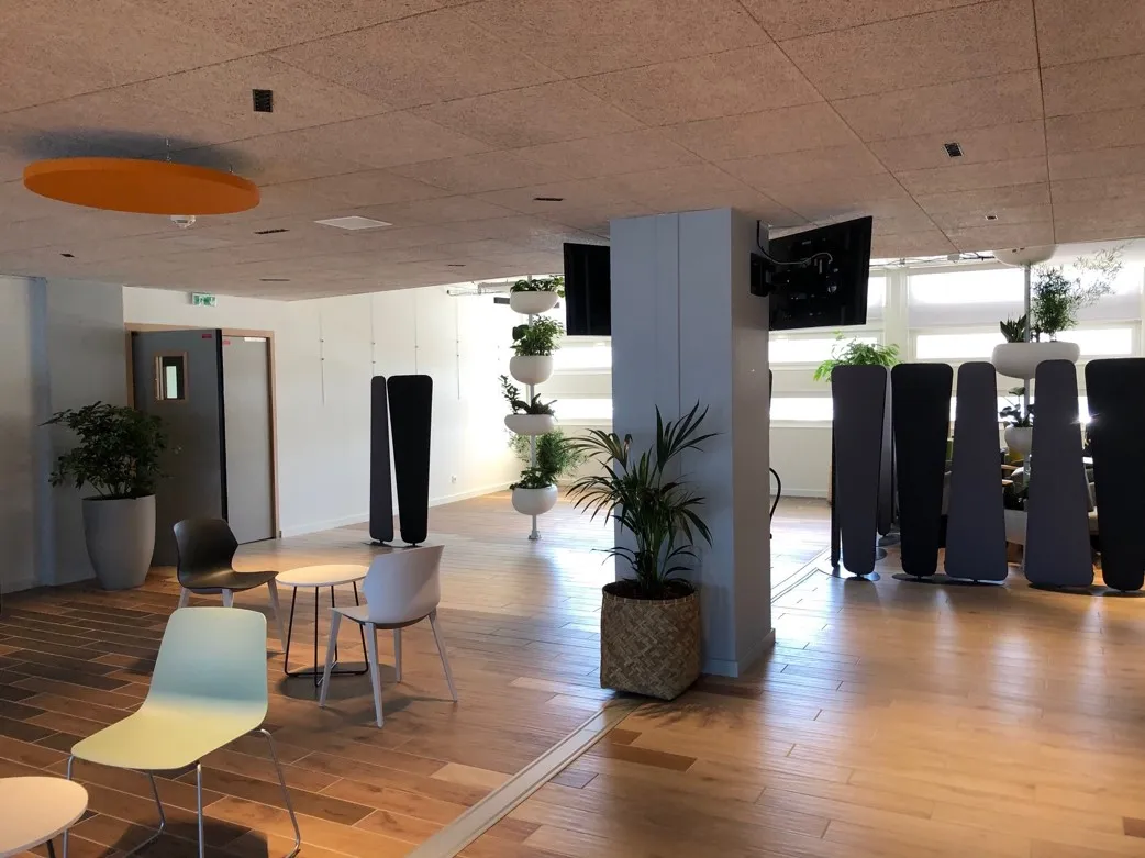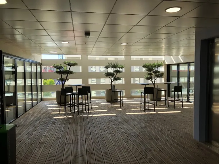 Connexions entre les bâtiments du Département et proximité aux espaces de services (gares, commerces, crèches, pratiques sportives etc…). L’un des objectifs du projet est de favoriser des modes doux pour se déplacer sur les différents sites, de limiter l’impact carbone du projet en insérant des écomatériaux (avec un cloisonnement modulable) et en installant une production d’énergie photovoltaïque en autoconsommation collective. La conception des postes de travail a bénéficié de l’expertise d’un ergonome.