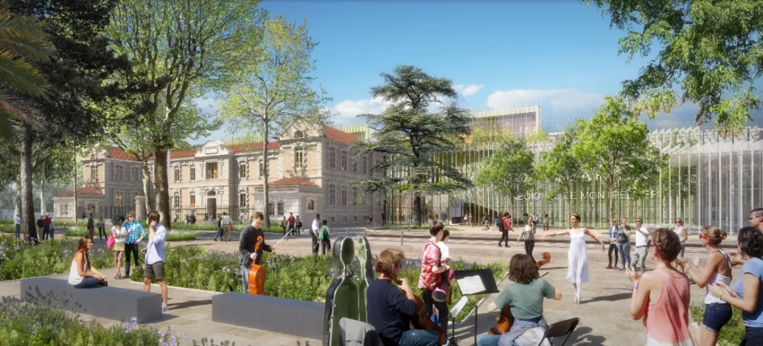 Ce nouvel ensemble immobilier puise son origine dans le souhait de regrouper les différents sites du Conservatoire à Rayonnement Régional de Montpellier en un seul et même lieu qui dégage une image pérenne, culturelle et environnementale forte. Lieu symbolique pour de nombreux Montpelliérains, la construction a pris forme sur la parcelle de l’ancienne Maternité Grasset, dont l’aile principale a été rénovée pour abriter les locaux administratifs.