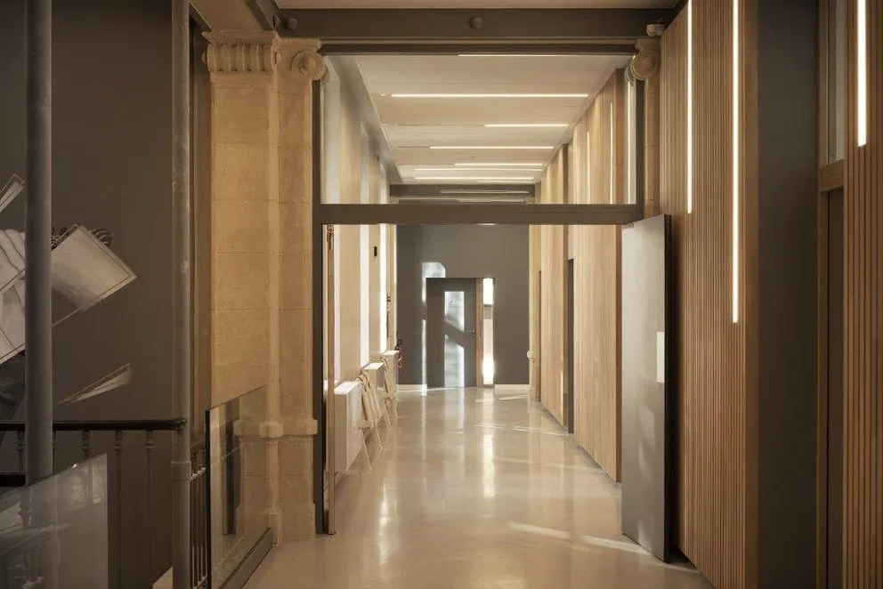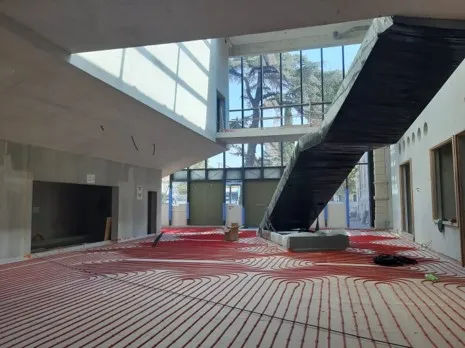 - Poutres à induction (salles , bureaux), radiateur (circulation, sanitaires), Plancher chauffant (hall, galerie)