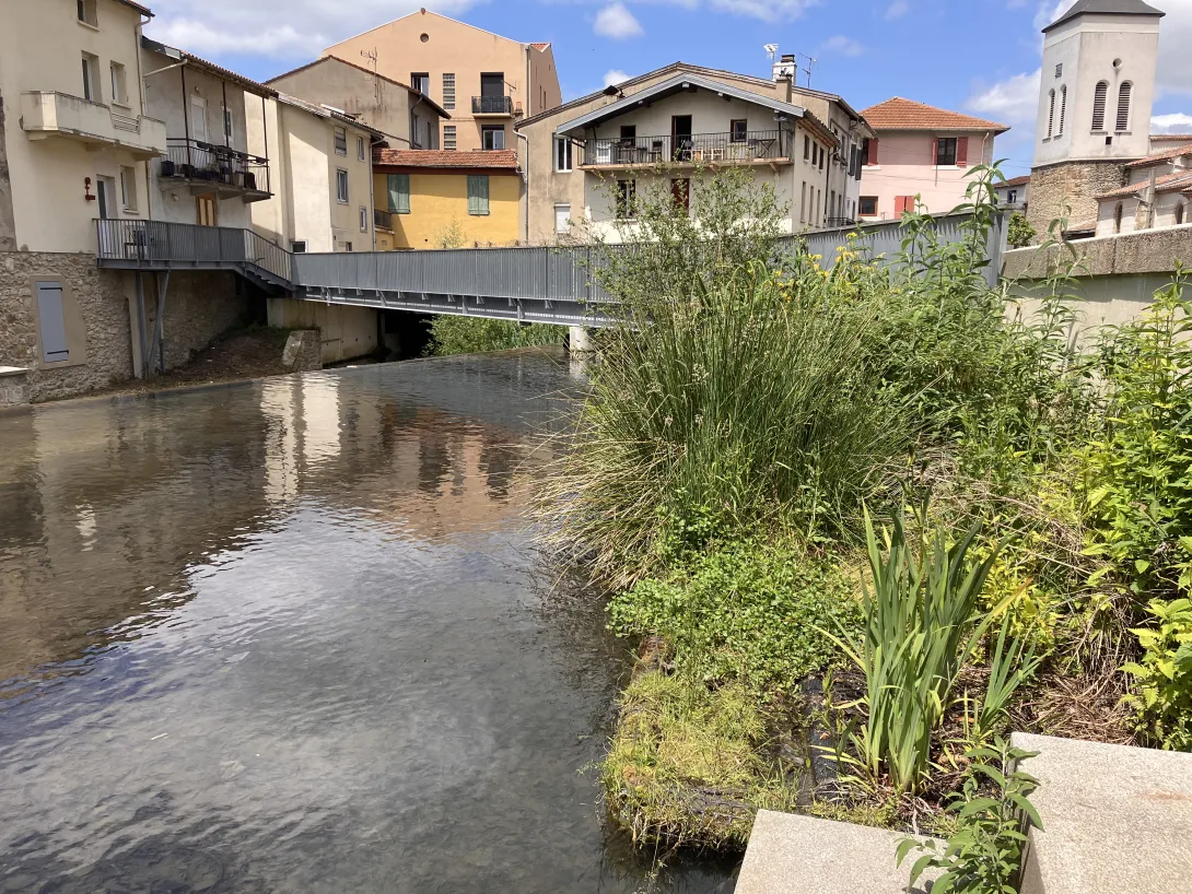 - une passerelle en bois et structure métal a été réalisée afin de relier le quartier Secoustous avec le cœur de ville plus dynamique.