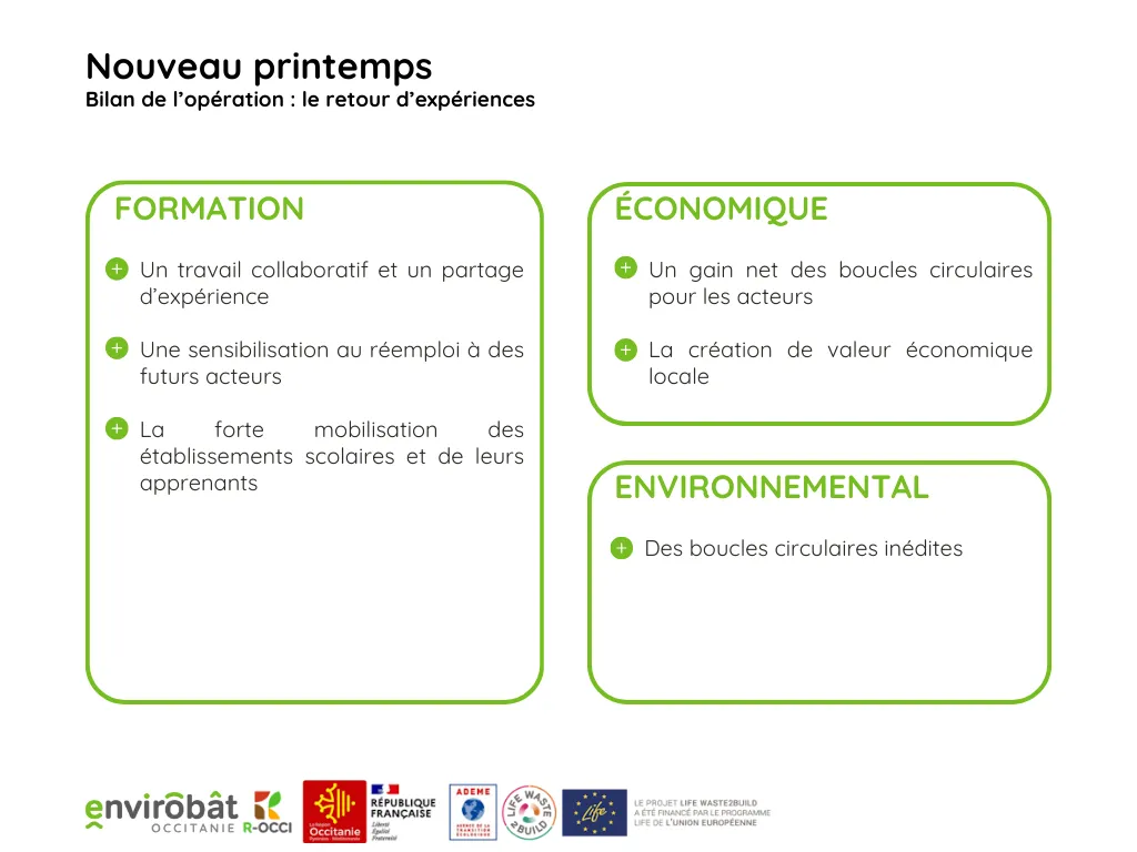 RETOURS D’EXPERIENCE DE LA VALORISATION