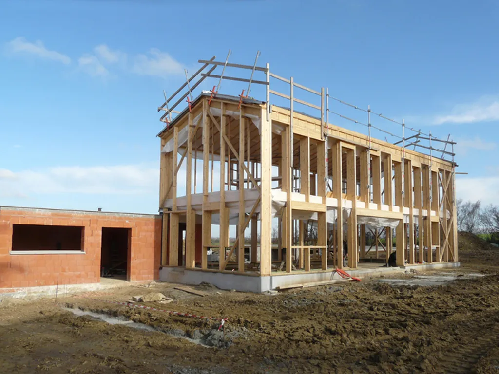 - l’ossature bois est continue entre les deux étages : les murs sont donc porteurs sur toute la hauteur du bâtiment