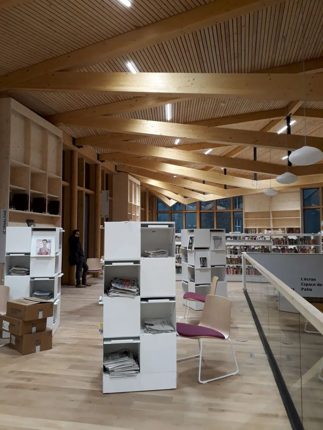 - Usages : médiathèque avec différents espaces, dont un espace d’animation culturelle, un foyer, des bureaux, et autres espaces d’administration et de stockage.