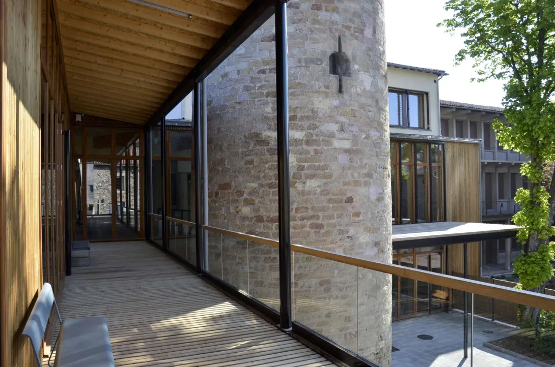 Ce projet a privilégié l’utilisation de matériaux biosourcés, en concevant par exemple une charpente complexe en bois dans la partie neuve, et en isolant avec de la fibre de bois et de la ouate de cellulose. Des solutions ergonomiques et économes ont été pensées pour garantir un confort thermique et visuel aux usagers de cet espace culturel. En guise de solution de protection solaire, un vitrage dynamique, qui s’adapte à la luminosité extérieure, a été mis en place. Pour ce qui est de l’émission de chaud et de froid, un plancher chauffant et rafraichissant a été installé. Une production d’électricité est assurée par une installation d’une quarantaine de modules photovoltaïques monocristallins sur toiture.