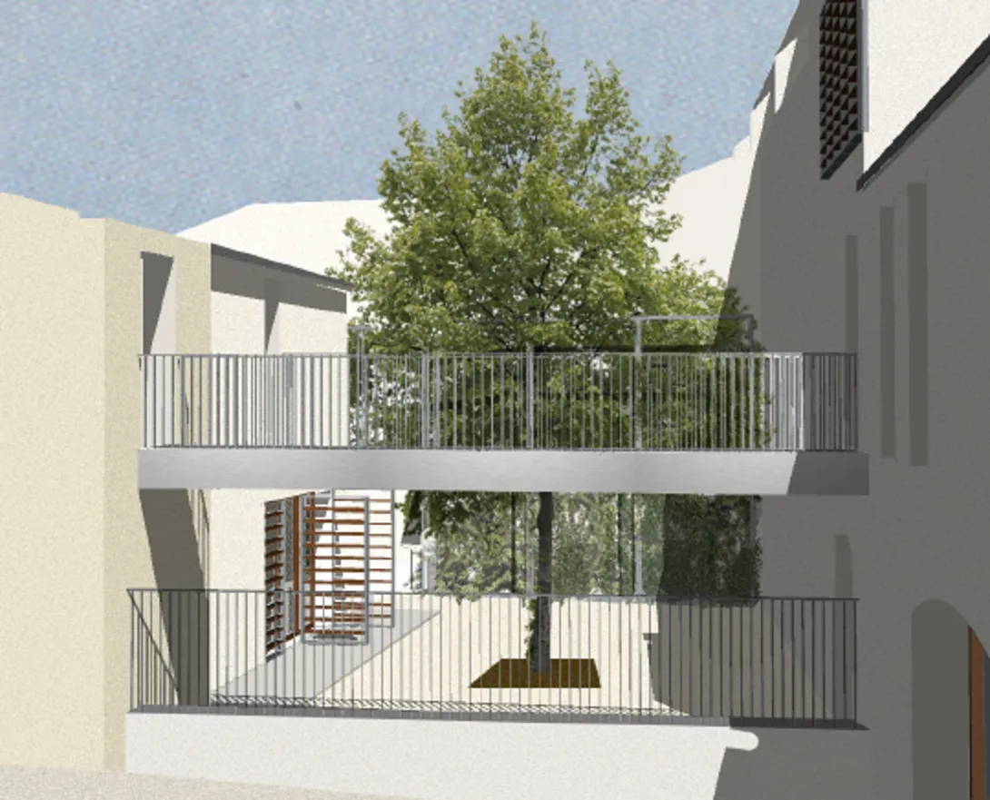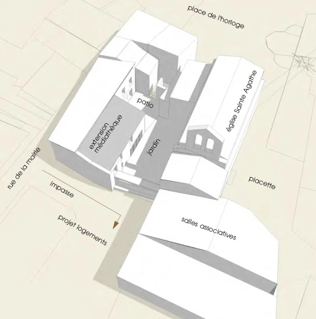 Ce projet est l’occasion de restructurer l’îlot urbain à forte dimension patrimoniale, celui-ci jouxtant l’église Sainte-Agathe du XIᵉ siècle, à travers notamment la création de cours et de passages piétons.
