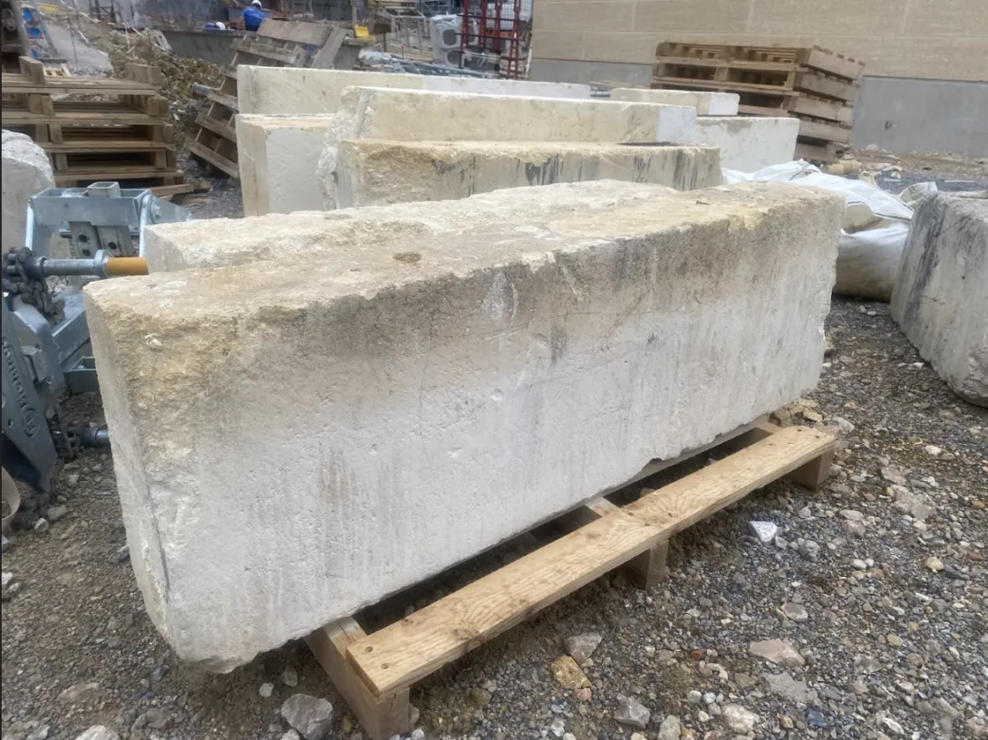 - 210 m² de pierres de Castries provenant de la dépose sélective du bâtiment de logement existant sur le site