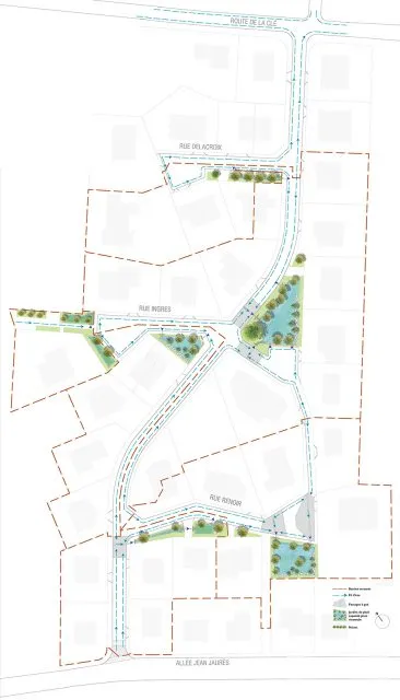 - Infiltrer les eaux pluviales in situ et en surface. Grâce aux espaces verts déjà présents sur des points bas du quartier.