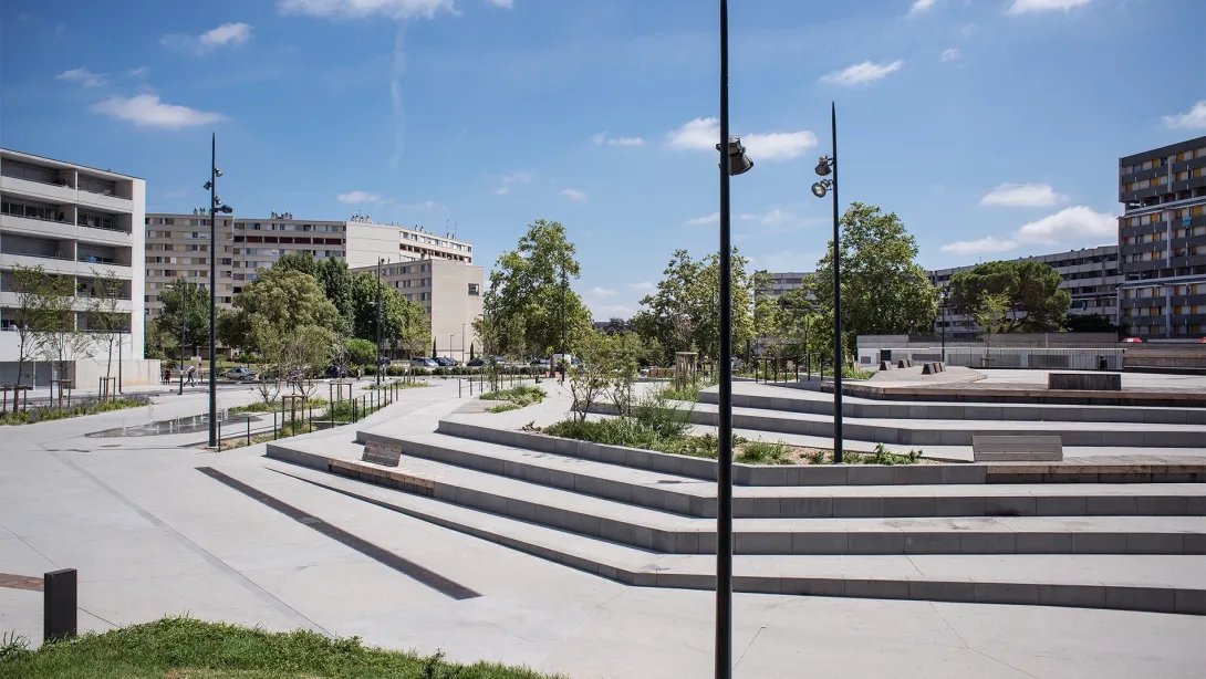 Dans le cadre du Projet de Renouvellement Urbain (PRU) de Bellefontaine, situé dans le vaste complexe urbain du Mirail, le projet de requalification a vocation à renforcer les espaces publics et offrir un cadre de vie attractif. Le projet de revalorisation est fondé sur une valorisation des traces historiques et géographiques, sur l’appropriation nouvelle des espaces par les habitants et sur un projet de nature en ville. Le quartier, installé le long de la Margelle de Garonne, est remis en scène en s’appuyant sur ce patrimoine géographique, architectural (ancien pigeonnier construction Candilis), végétal (le bois de Bellefontaine), et hydraulique (différentes sources acheminées par l’aqueduc romain de la Reine Pédauque) en créant différents belvédères qui offrent des points de vue variés, des espaces de jeux intergénérationnels et de nouveaux cheminements vers les quartiers environnants. Une promenade Nord-Sud relie la place publique commerciale du métro à une place publique organisée sur plusieurs niveaux effaçant la présence de dalles.