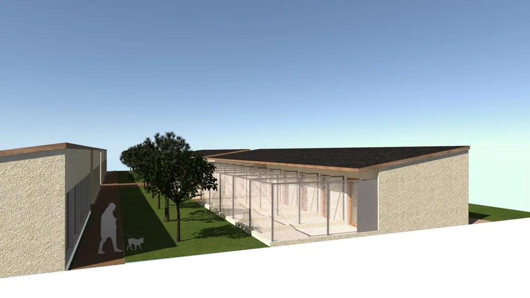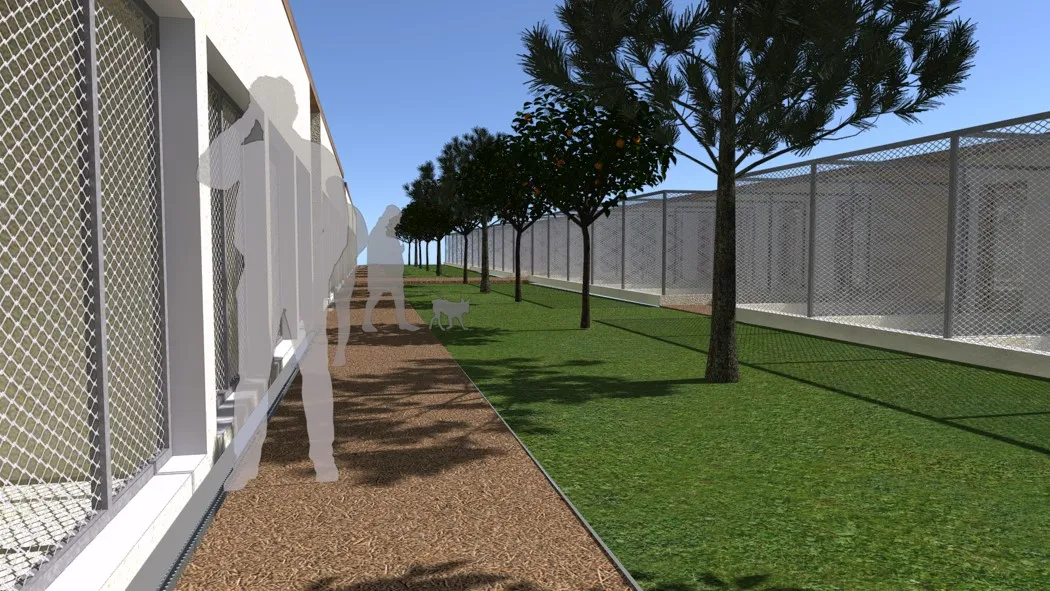 Le projet étudie la possibilité de planter un parc boisé à l’entrée du refuge pour apporter de la fraicheur, atténuer le bruit, permettre une aire de promenade et compenser les émissions carbone de la construction. Cette construction prévoit aussi l’emploi de bois en structure et en isolation. L’option d’installer des panneaux photovoltaïques sur les toitures des boxes des chiens est envisagée, ainsi que celle d’une gestion intelligente des eaux de pluie : parking en gravier stabilisé, rétention des eaux pluviales via une noue, récupération des eaux de pluie pour le nettoyage des boxes.