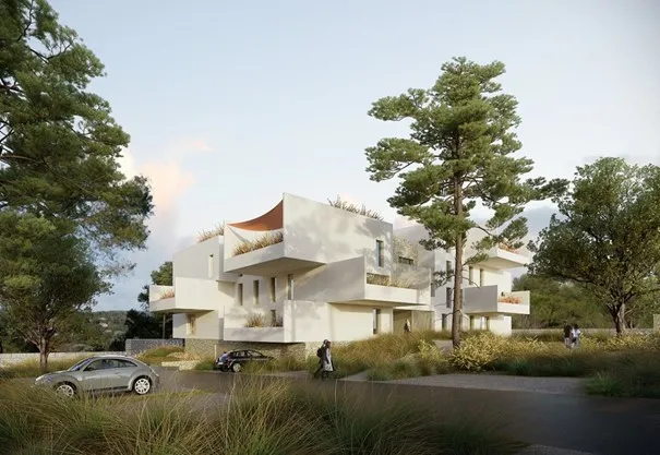Implanté au sein d’un paysage remarquable, le projet vise à créer des espaces extérieurs paysagés et partagés, dans un esprit méditerranéen et nourricier. Des zones de compostage pour chaque appartement sont prévues, ainsi que des locaux vélos facilement accessibles.