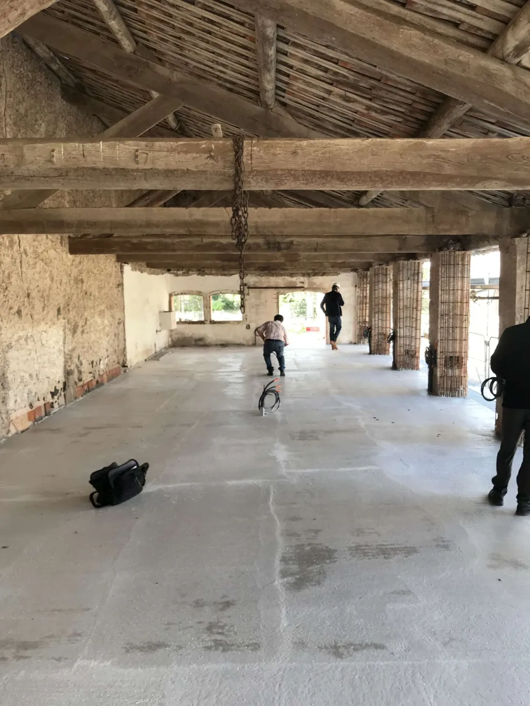 - Murs : Isolation en chaux-chanvre (10cm) pour un aspect naturel et une meilleure performance thermique d’un mur de refends traversant tout l’espace d’accueil.