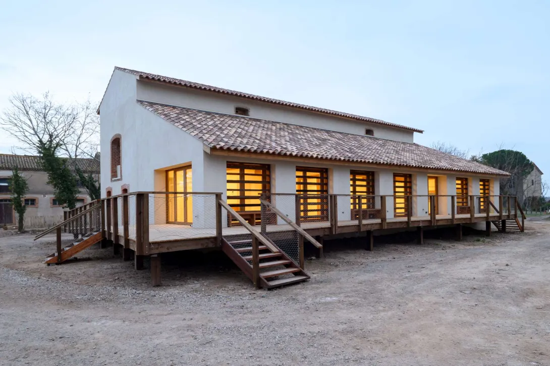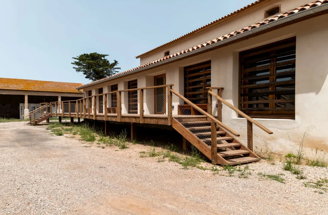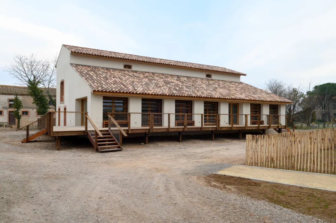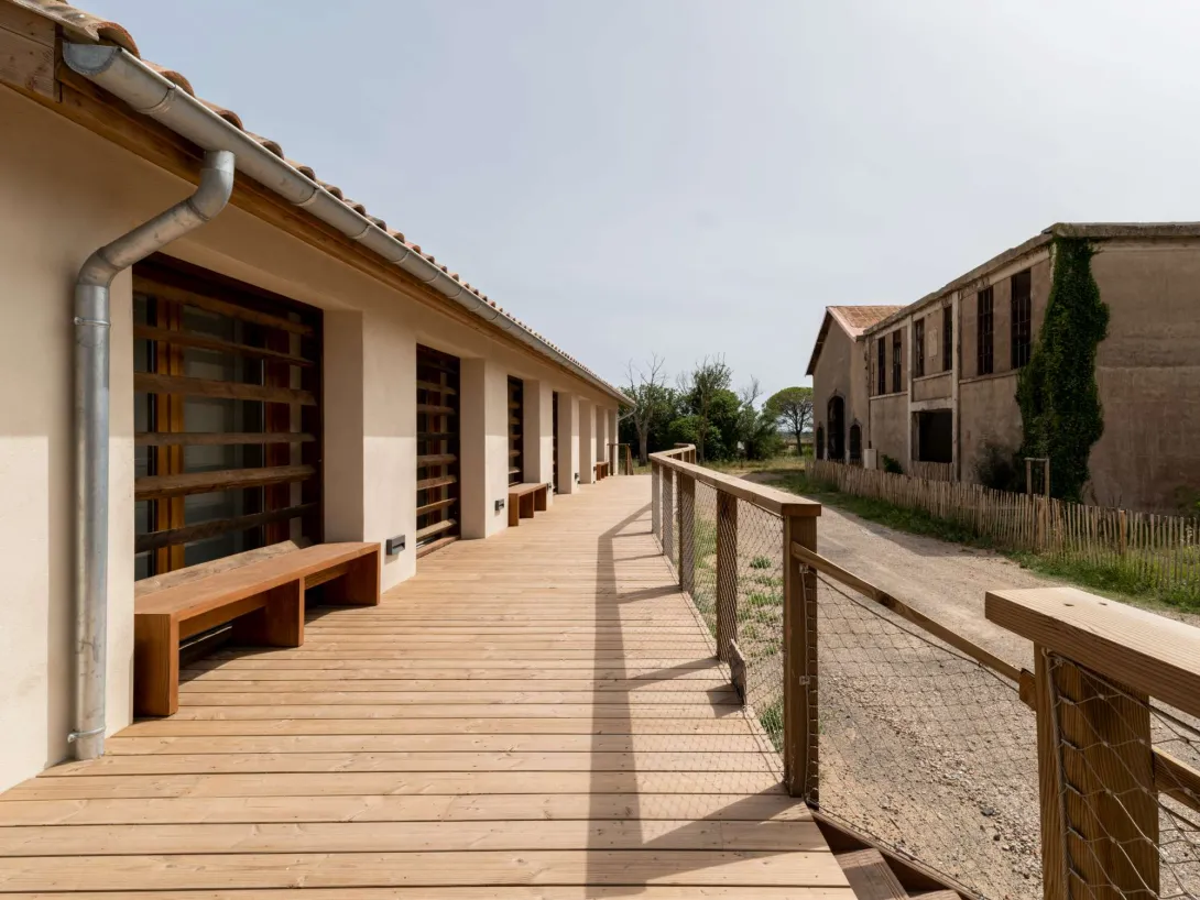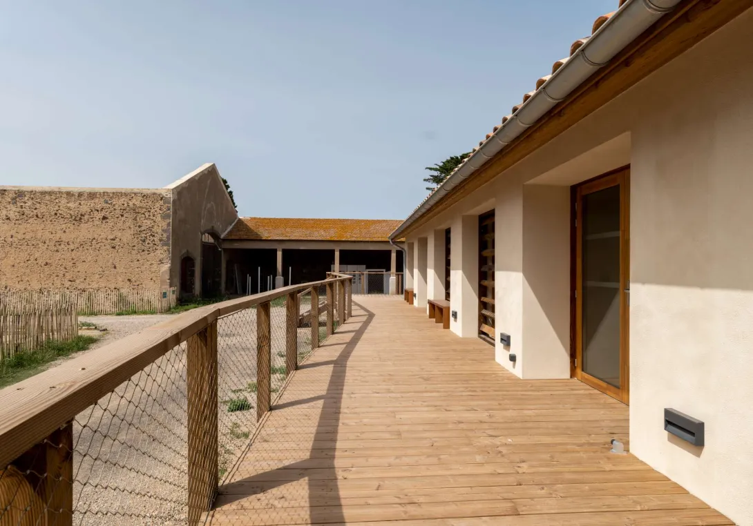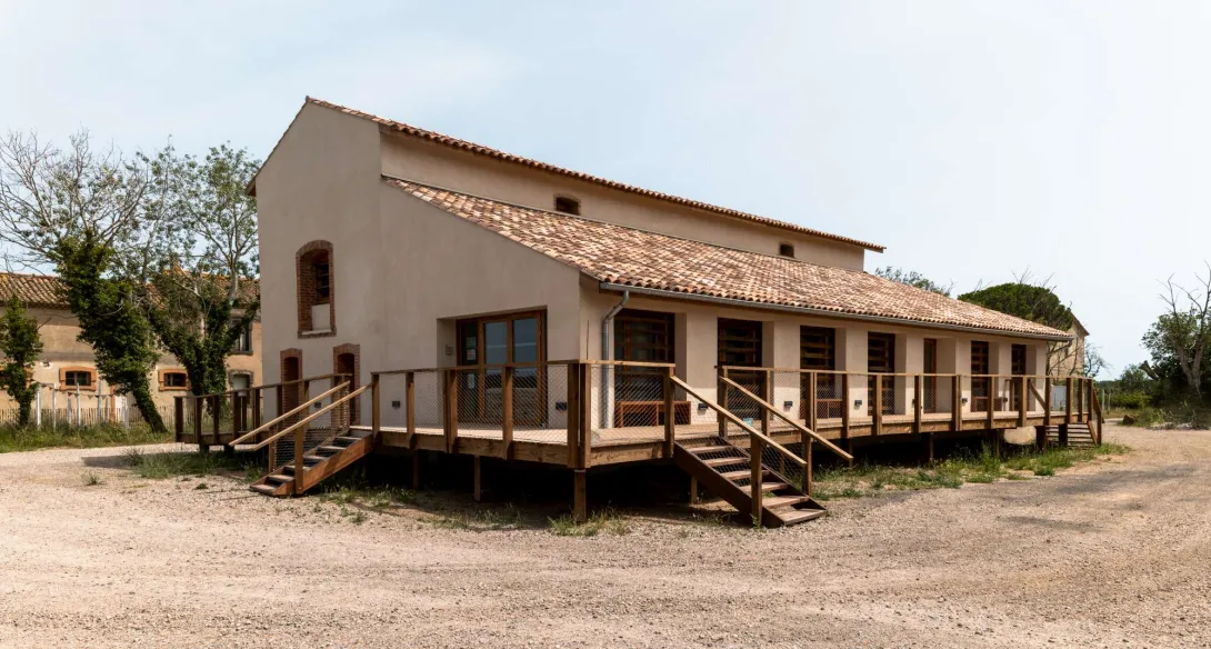 Situé près d’Agde, au cœur d’une réserve naturelle protégée classée Natura 2000, ce projet de réhabilitation vise à revitaliser un domaine ancien tout en respectant les contraintes environnementales et patrimoniales de la région. Cette restructuration, livrée en février 2024, a permis de transformer une ancienne écurie en espace d’accueil, avec la démolition de deux bâtiments pour créer un parking public.