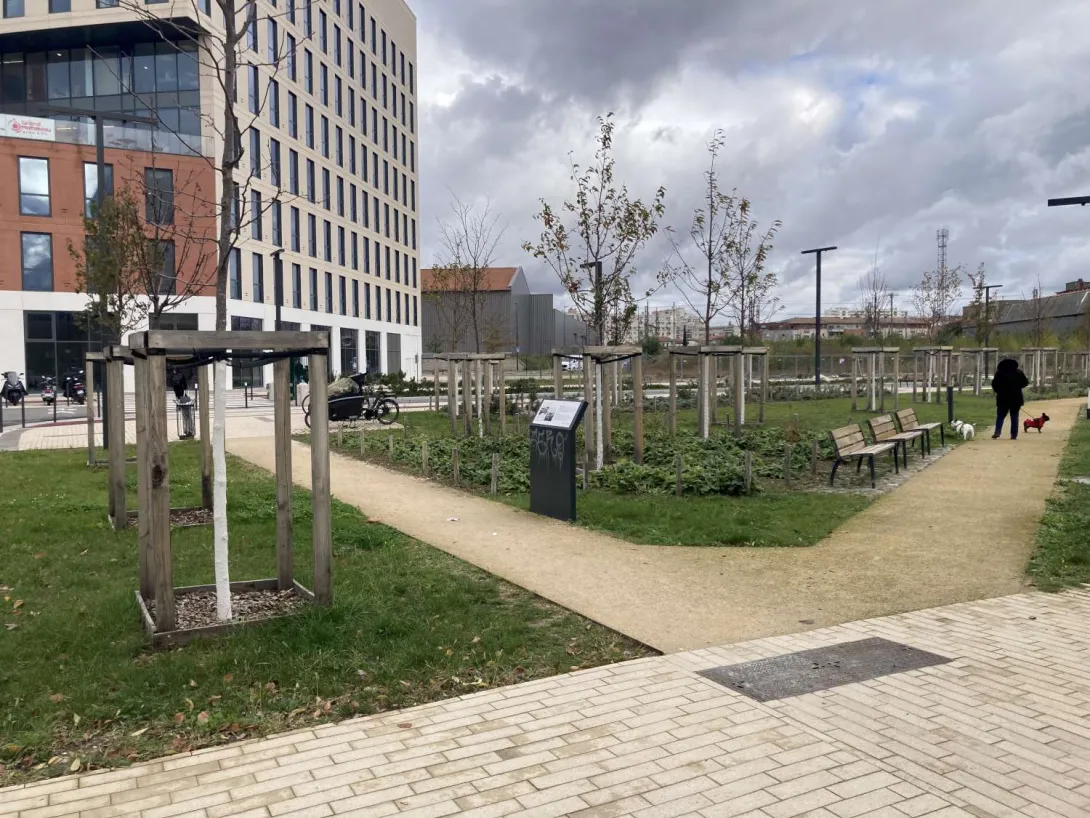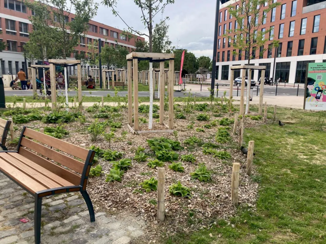 La démarche de concertation a abouti, commencée en phase PRO pendant le COVID. Les artisans et graphistes qui résident dans le bâtiment des Magasins Généraux ont été sollicités. Parmi les demandes recueillies lors de la concertation, il y a eu notamment des arbres de certaine hauteur pour avoir de l’ombre, une aire de jeu (il y en a très peu dans quartier)... L’Agence Régionale de Santé a été associée également et a manifesté le souhait d’avoir du mobilier urbain pour la pause déjeuner (des bancs en bois, table de pique-nique, fontaine à eau ont été installés).