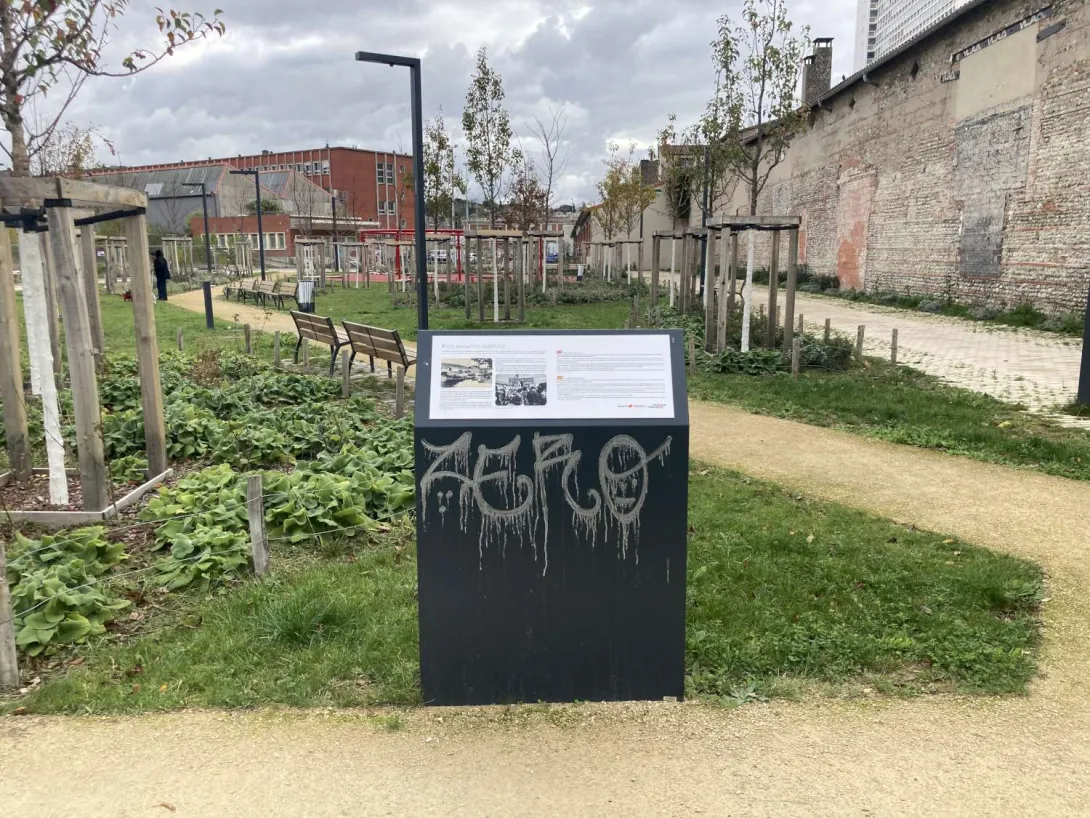 En lien avec le nom du quartier (Raisin ), le souhait est ressorti d’avoir de la vigne. Mais cela n'avait pas de fondement puisque le nom Raisin provient en réalité du patronyme du médecin du roi de l’époque. Des fruitiers ornementaux ont tout de même été plantés : pommiers d’ornement, tilleuls, cerisiers d’ornement…mais ne sont pas comestibles en raison de la pollution résiduelle dans les sols. Ces arbres ne seront pas très grands mais ils fournissent densément de l’ombre et permettent d’avoir le rayonnement du soleil pendant l’hiver.