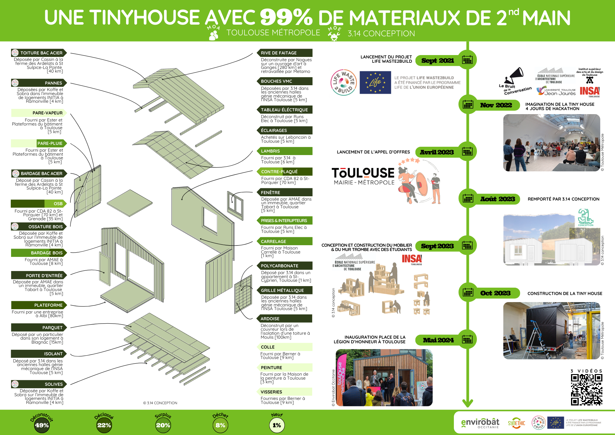 En mai 2024, la Tiny House a été inaugurée place de la légion d’honneur à Toulouse par Jean-Claude Dardelet, Vice-Président Attractivité, Tourisme, Europe et International de Toulouse Métropole et membre de pilotage du projet Life Waste2Build.