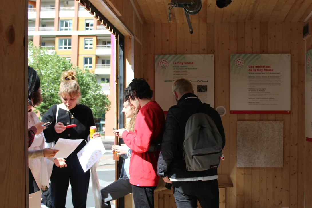 En octobre 2023, la construction de la Tiny House et de ses mobiliers a démarré. Des étudiants de l’ENSA et de l’INSA ont participé respectivement à la construction du mobilier et du mur trombe.