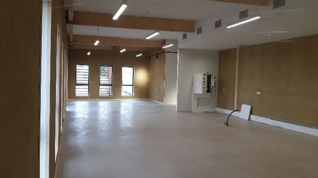 - enduits terre crue en finition dans les bureaux et espace pédagogique